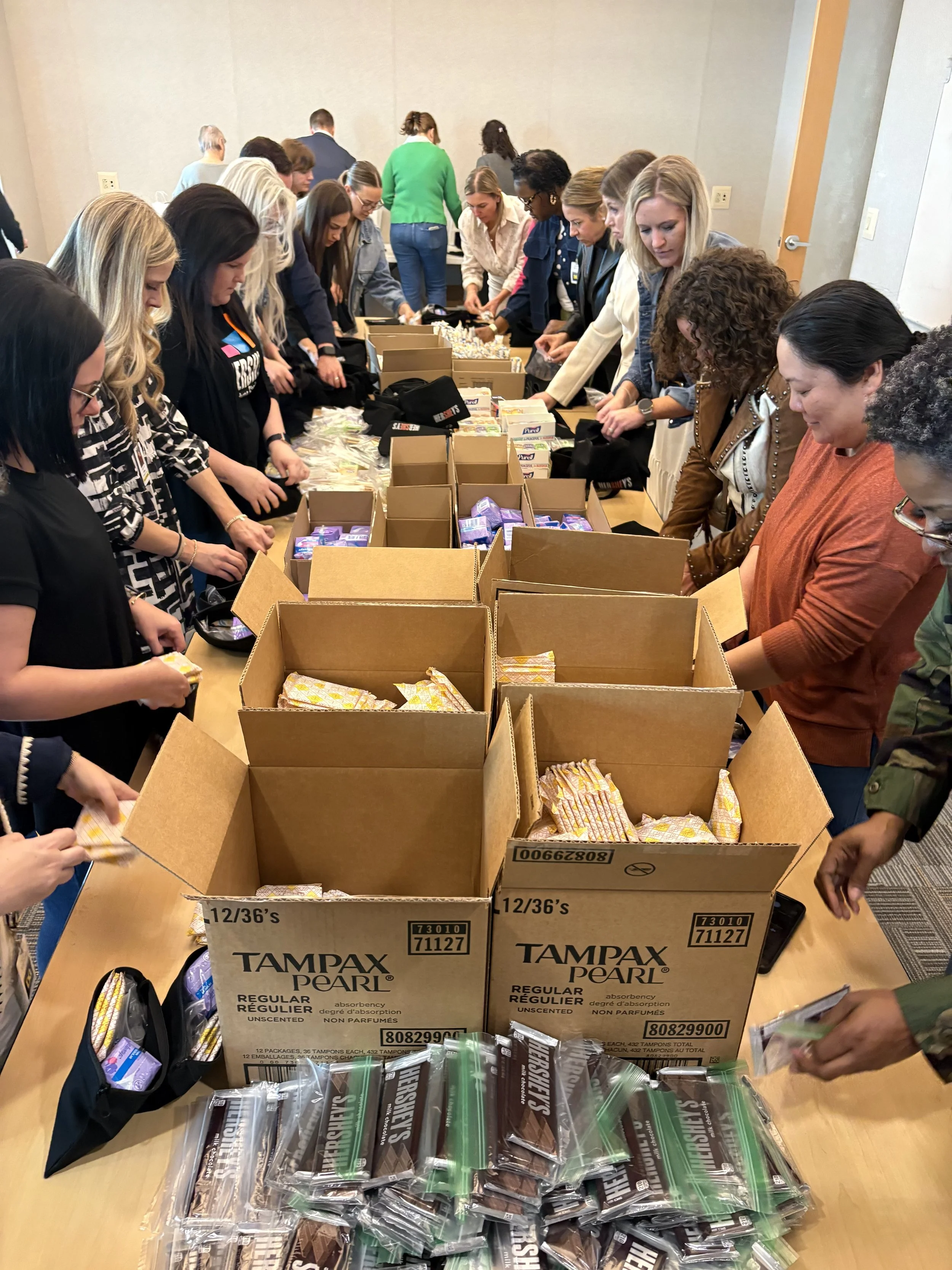Together, volunteers assembled more than 600 period care packages for high schools across the state served by CISTN. Each package included essential items like pads, tampons, and hand sanitizer—resources many students don’t consistently have access to—along with small touches of encouragement like chocolate, thanks to The Hershey Company. These simple but critical supplies help students stay focused on what matters most: being present and engaged in school.