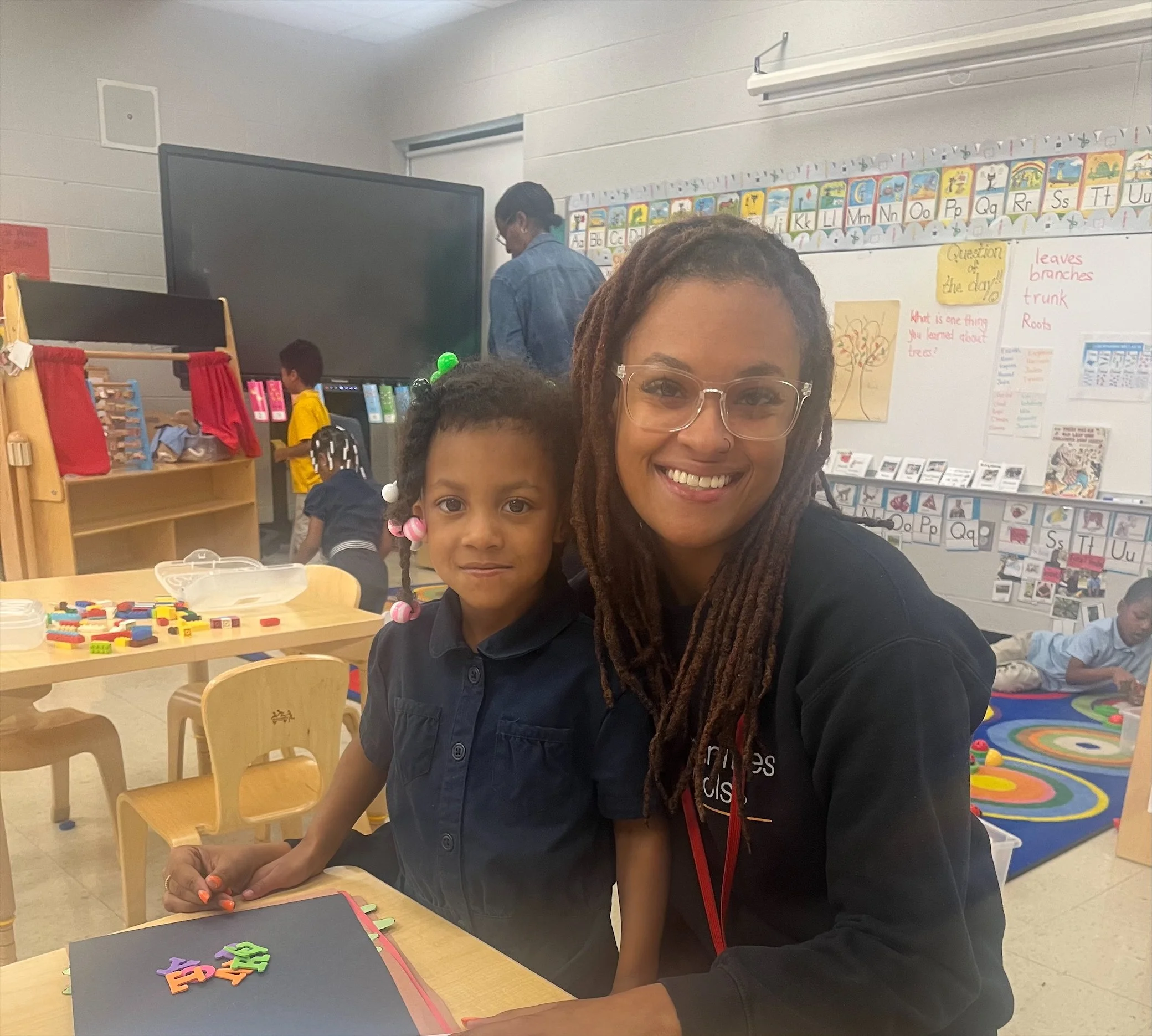 Every afternoon after Pre-K lets out, Ms. Erin helps Maya with her homework until the other classes end for the day. Maya has also been teaching Ms. Erin a few things about American Sign Language (ASL), which Maya is fluent in! Their afternoons aren’t all work and no play, however: the Pre-K student also loves building skyscrapers out of Lego blocks once she’s done with her homework.